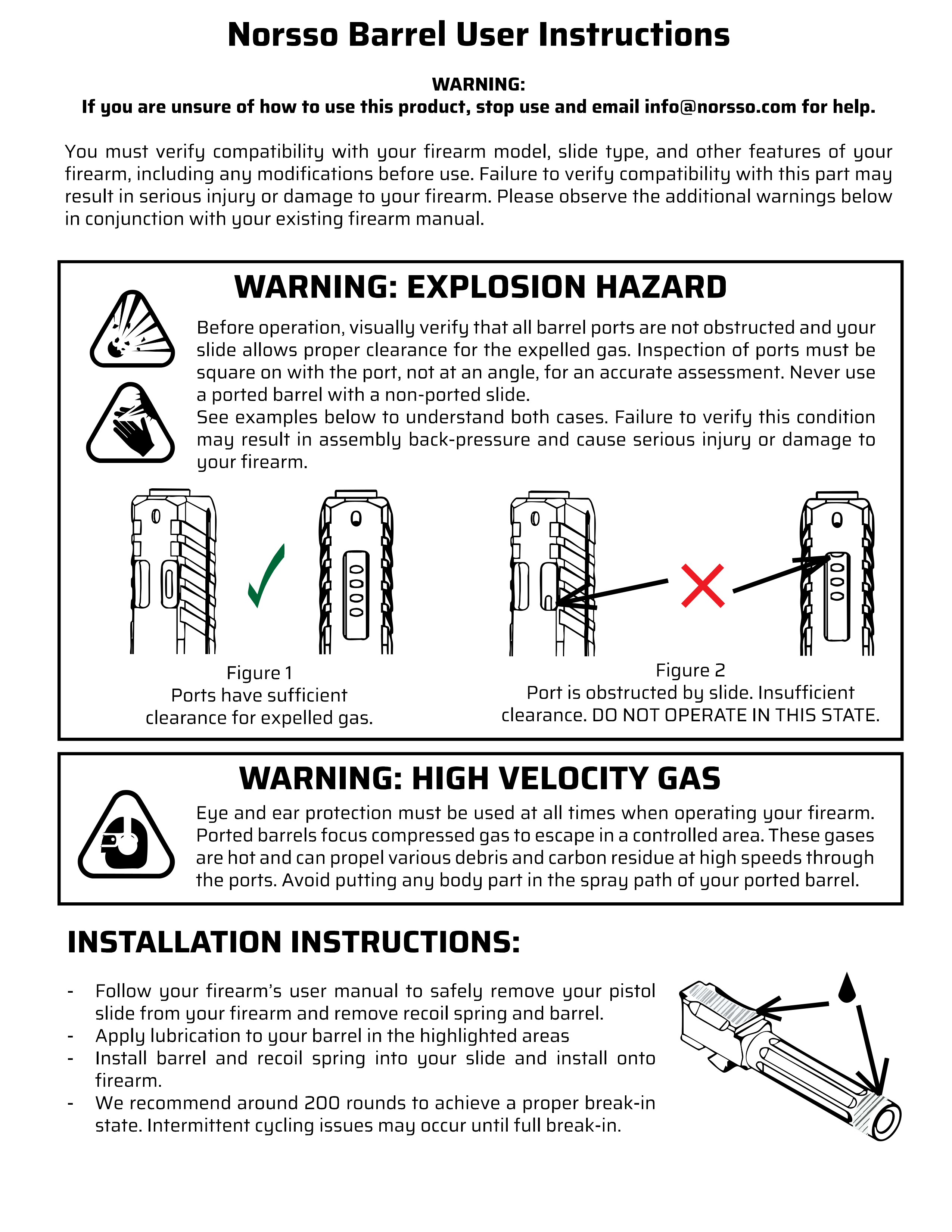 Thank you for purchasing a Norsso Barrel! To safely use your new barrel, please observe the following instructions: